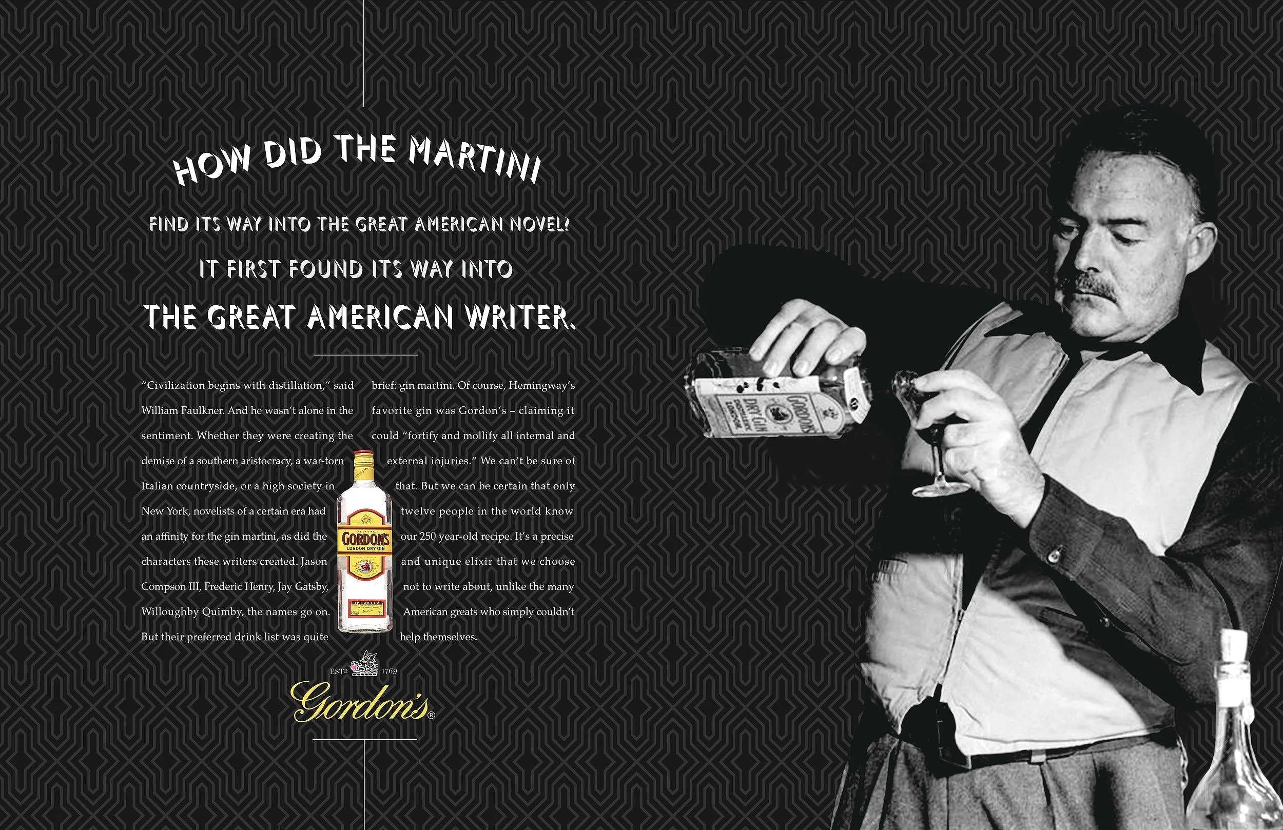 Difficult to pick my three favorite print pieces, but I tried. A celebration of the Boxing Hall of Fame in Canastoga, NY; a gin ad featuring my hero, Hemingway; and an award-winning ad for the National Ad Council.